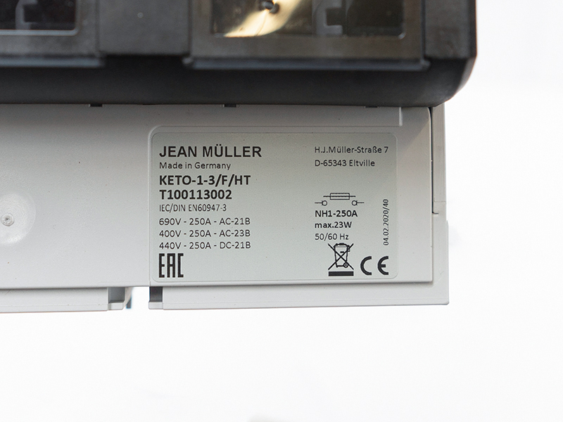 Rozłącznik bezpiecznikowy skrzynkowy KETO-1-3/F jest 3-fazowym aparatem łącznikowym przeznaczonym do zabudowy na płycie montażowej. Posiada plombowaną pokrywę oraz otwory umożliwiające pomiar napięcia na nożach wkładki bezpiecznikowej.Standardowo wyposażony jest w zaciski śrubowe M10 z możliwością dołożenia zacisków obejmowych, pryzmatycznych lub ramkowych. Wszystkie części przewodzące są całkowicie chronione przed przypadkowym dotknięciem.Rozłączniki KETO stosowane są w rozdzielnicach przemysłowych, mieszkaniowych, w złączach kablowych i pomiarowych oraz w układach kompensacji mocy biernej.