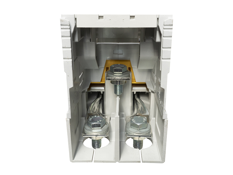 Szerokość zabudowy 100 mm. Montaż bezpośredni na szynach prądowych o rozstawie 185 mm.
