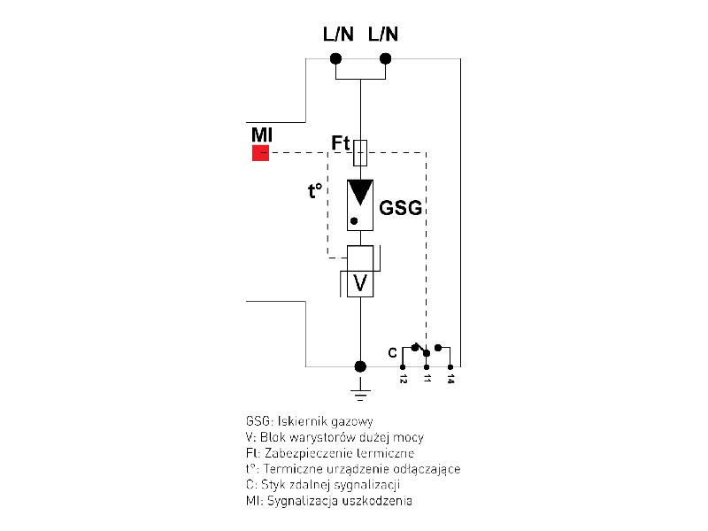 | Prąd udarowy (10/350 µs) - Iimp [kA] | 15kA |