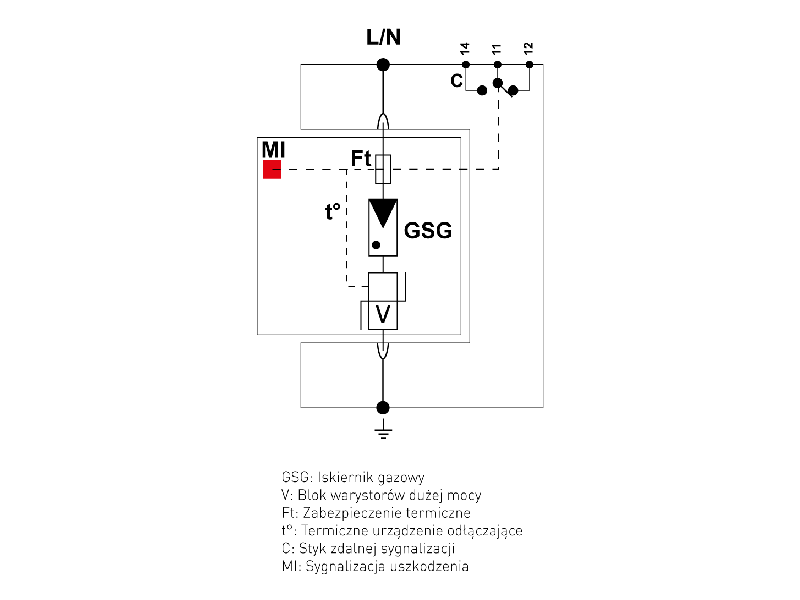 | Znamionowy prąd wyładowczy (8/20 µs) - IN [kA] | 20kA |