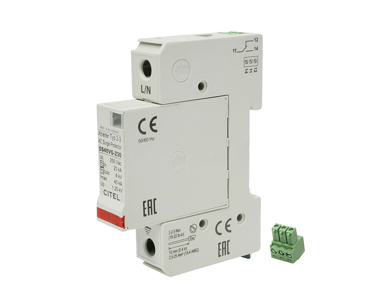 1-bieg. ogranicznik przepięć do sieci AC i DC wykonany w technologii VG firmy CITEL, gdzie jako elementy zabezpieczające zastosowano szeregowe połączenie iskiernika gazowego z warystorem, o prądzie wyładowczym In = 20kA/bieg (8/20µs), przeznaczony do montażu w rozdzielnicach nn jako 2-gi i 3-ci stopień zabezpieczeń przeciwko przepięciom indukowanym. Wyposażony w zdalną sygnalizację zadziałania -S.