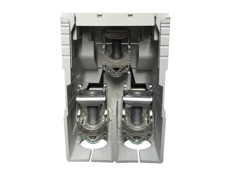 Szerokość zabudowy 100 mm. Montaż bezpośredni na szynach prądowych o rozstawie 185 mm.