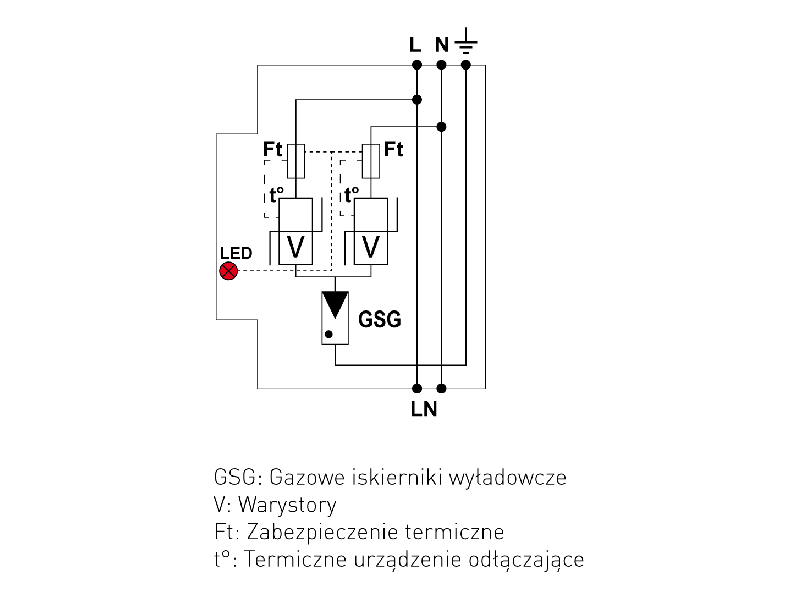 • Znamionowy prąd wyładowczy na biegun: In = 5kA (8/20 µs)