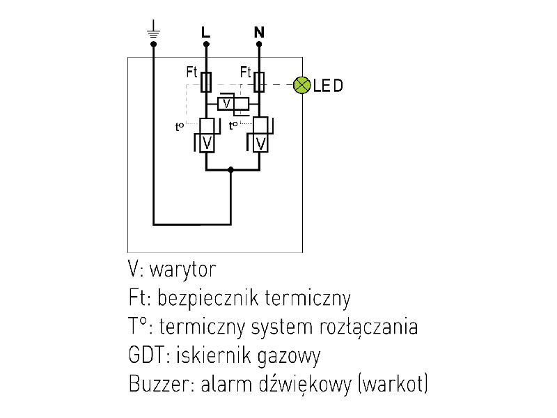 • Maksymalny prąd wyładowczy (8/20µs) Imax=2kA