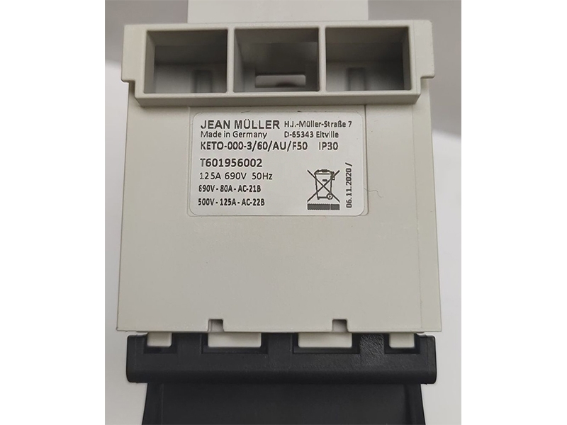 Rozłącznik bezpiecznikowy skrzynkowy KETO-000-3/60/AU/F50 jest 3-fazowym aparatem łącznikowym o prądzie znamionowym In=125A, przeznaczonym do zabudowy na szynach prądowych w rozstawie 60mm. Posiada plombowaną pokrywę oraz otwory umożliwiające pomiar napięcia na nożach wkładki bezpiecznikowej. Standardowo wyposażony jest w zacisk windowy F50 z podejściem zasilania od dołu.Pokrywa rozłącznika wykonana jest z samogasnącego tworzywa bez zawartości halogenków. Wszystkie części przewodzące są całkowicie chronione przed przypadkowym dotknięciem.