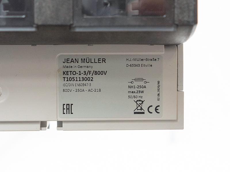 | Kategoria użytkowania | 800V - 250A - AC-21B |