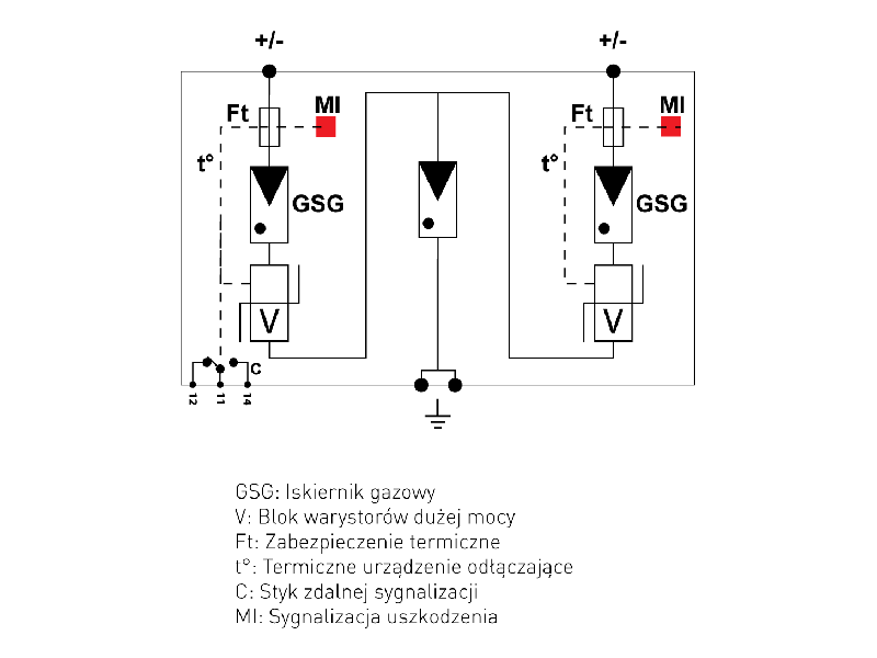 | Zgodność z normami | IEC 61643-1 i EN 50539-11 i 12 |