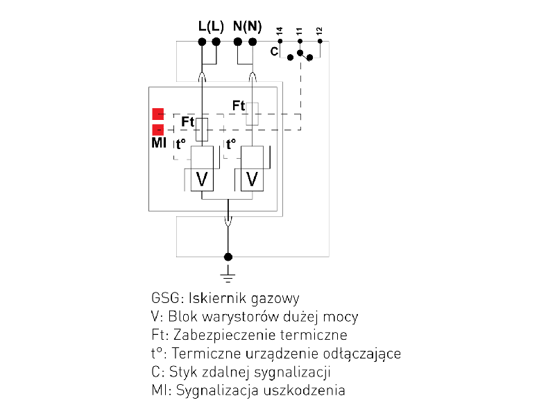• Znamionowy prąd wyładowczy (8/20µs) In=5kA/bieg.