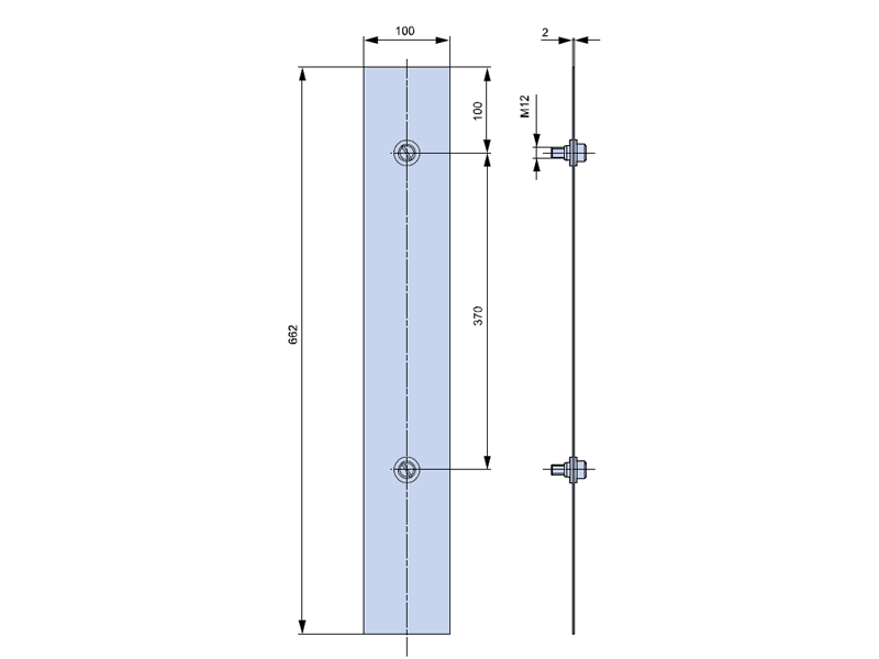 Osłona szyn 185 mm, szerokość 100 mm, przykręcana śrubami M12