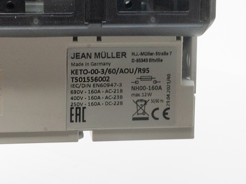 Rozłącznik bezpiecznikowy skrzynkowy KETO-00-3/60/AOU/R95 jest 3-fazowym aparatem łącznikowym przeznaczonym do zabudowy na szynach prądowych w rozstawie 60 mm. Posiada plombowaną pokrywę oraz otwory umożliwiające pomiar napięcia na nożach wkładki bezpiecznikowej. Pokrywa rozłącznika wykonana jest z samogasnącego tworzywa bez zawartości halogenków. Wszystkie części przewodzące są całkowicie chronione przed przypadkowym dotknięciem. Rozłączniki KETO stosowane są w rozdzielnicach przemysłowych, mieszkaniowych, w złączach kablowych i pomiarowych oraz w układach kompensacji mocy biernej.