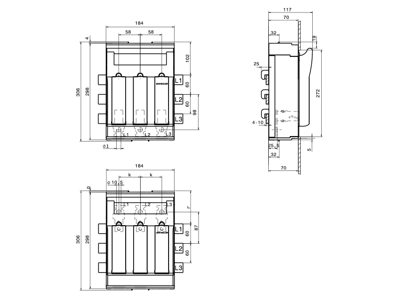 Rozłącznik bezpiecznikowy skrzynkowy KETO na szyny o rozstawie 60mm