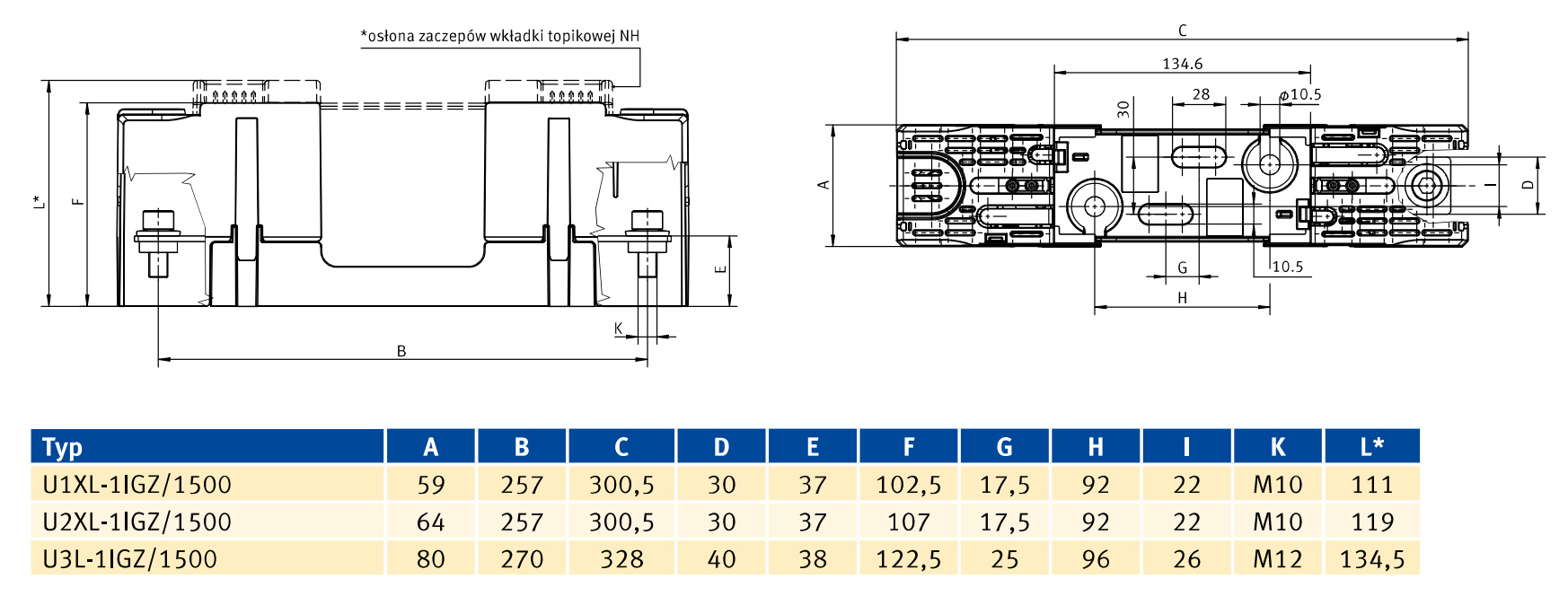 | Prąd cieplny z wkładką topikową Ith [A] | 63A |