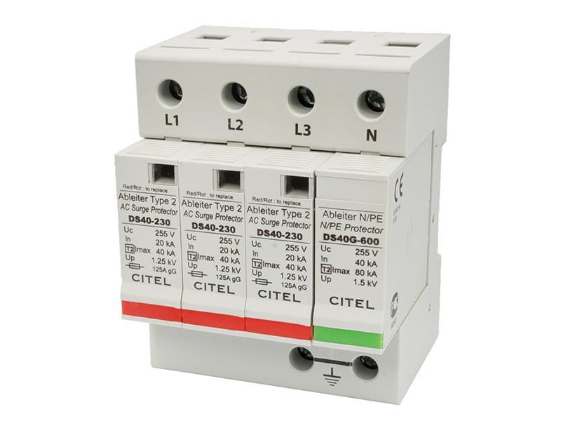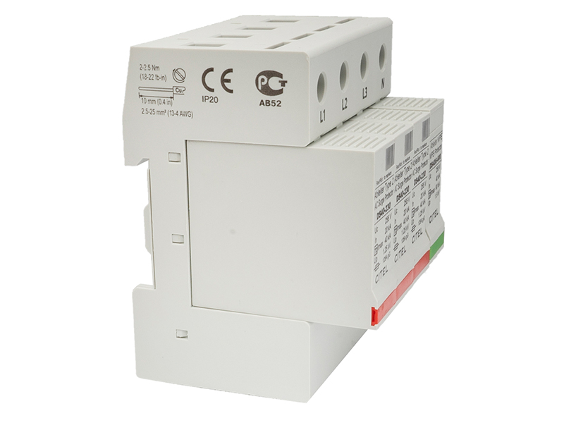 4-bieg. ogranicznik przepięć do sieci AC firmy CITEL o prądzie wyładowczym In = 20kA/bieg (8/20µs), gdzie jako element zabezpieczający w pierwszych trzech modułach zastosowano blok warystorów, natomiast w czwartym iskiernik gazowy. Przeznaczony do montażu w rozdzielnicach nn jako 2-gi stopień zabezpieczeń przeciwko przepięciom indukowanym. Występuje również w wersji ze zdalną sygnalizacją zadziałania -S.