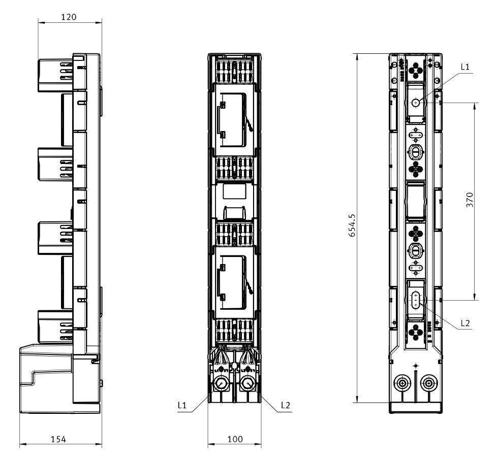 L3 1500V 500A 500A 75W 370mm 30x10mm zacisk KM2G 25-150/185-300mm2 32Nm IP10 od -25 do +55°C góra/dół pionowe 3 IIIParametry elektryczne