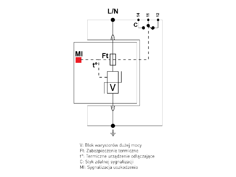 - Znamionowy prąd wyładowczy (8/20µs) In=30kA/bieg.