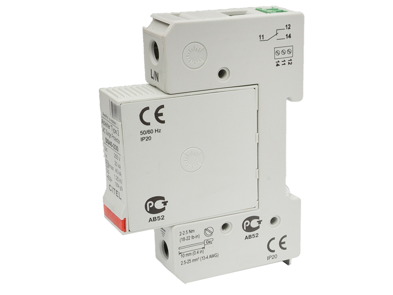 1-bieg. ogranicznik przepięć do sieci AC firmy CITEL o prądzie wyładowczym In = 20kA/bieg (8/20µs), gdzie jako element zabezpieczający zastosowano blok warystorów. Przeznaczony do montażu w rozdzielnicach nn jako 2-gi stopień zabezpieczeń przeciwko przepięciom indukowanym. Występuje również w wersji ze zdalną sygnalizacją zadziałania -S.