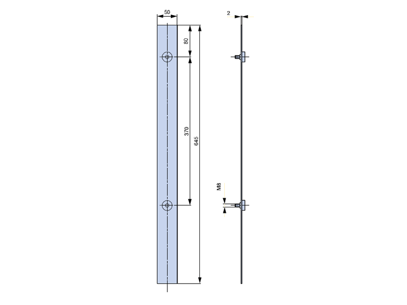 Osłona pola rezerwowego o szerokości 50 mm w systemie szyn o rozstawie 185 mm, przykręcana śrubami z tworzywa sztucznego M12 bezpośrednio do szyn lub do adaptera AL-SL00/24 lub AL-SL00/42.