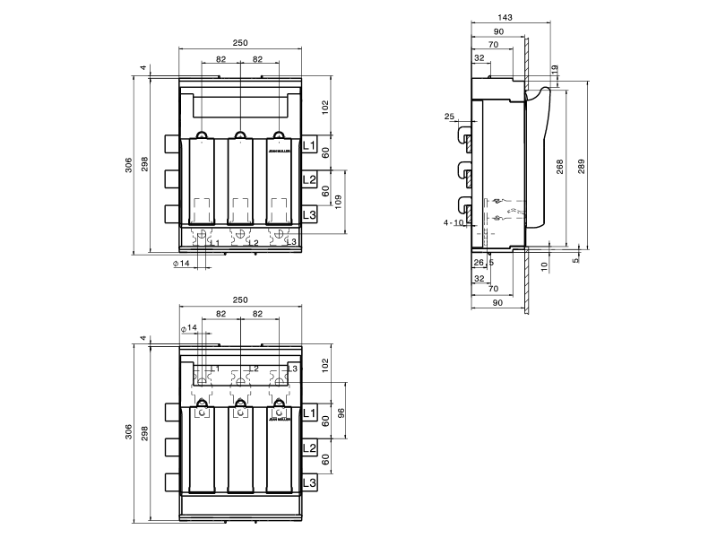 Rozłącznik bezpiecznikowy skrzynkowy KETO na szyny o rozstawie 60mm