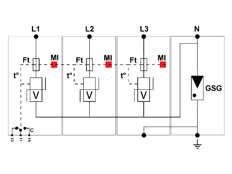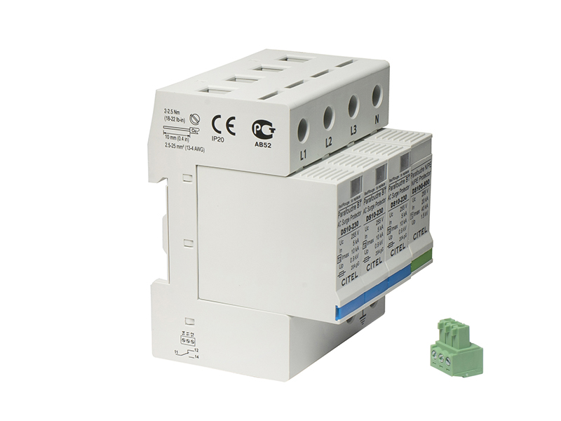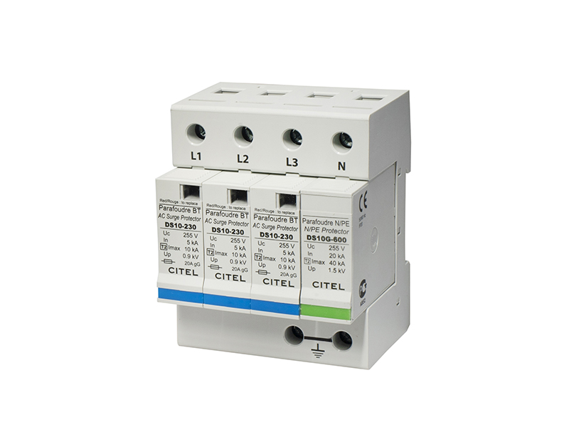 4-bieg. ogranicznik przepięć do sieci AC firmy CITEL o prądzie wyładowczym In = 5kA/bieg (8/20µs), gdzie jako element zabezpieczający w pierwszych trzech modułach zastosowano blok warystorów, natomiast w czwartym iskiernik gazowy. Przeznaczony do montażu w rozdzielnicach nn jako 3-ci stopień zabezpieczeń przeciwko przepięciom indukowanym. Występuje również w wersji ze zdalną sygnalizacją zadziałania -S.