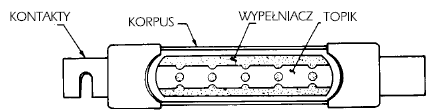 Typowa wkładka bezpiecznikowa składa się z elementu topikowego otoczonego wypełniaczem i zamkniętego w korpusie bezpiecznika. Element jest przyspawany lub przylutowany do zestyków bezpiecznika (styków nożowych lub okuć). Element topikowy jest wykalibrowanym przewodnikiem. Jego konfigurację, masę oraz zastosowane materiały dobrano tak, aby uzyskać pożądane charakterystyki elektryczne i cieplne. Element topikowy utrzymuje ścieżkę prądową przez bezpiecznik. Topik generuje ciepło w ilości i w tempie zależnym od jego rezystancji oraz od prądu obciążenia.
