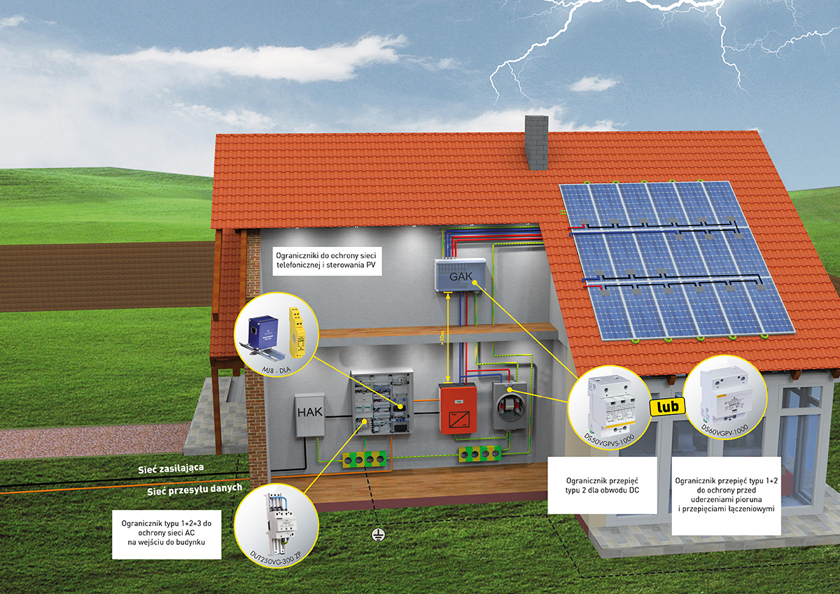 Urządzenia fotowoltaiczne zainstalowane na dachach ze względu na dużą powierzchnię i eksponowane miejsce powodują wysokie ryzyko przepięć dla urządzeń elektrycznych zainstalowanych w budynku.