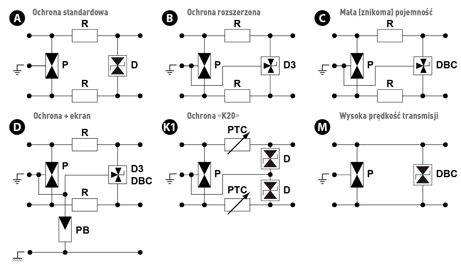 - układ ochronny o «małej pojemności» dla dużych szybkości transmisji (>1 Mbit/s);