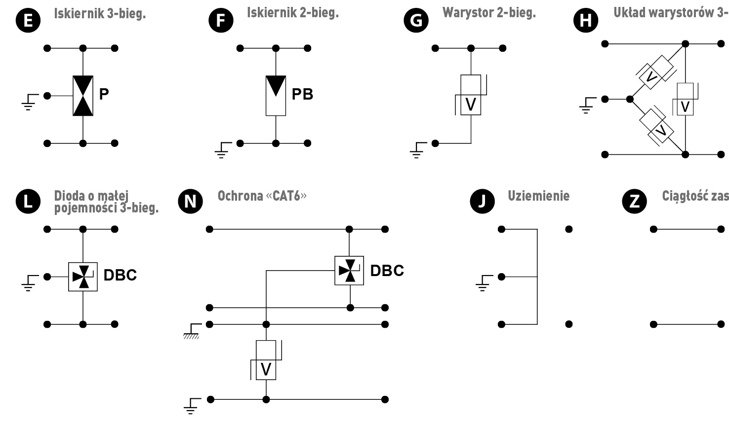 - ochrona przeciwprzepięciowa «Cat 5» lub «Cat 6»: zaprojektowana do bardzo dużych szybkości transmisji (do 10 Gbit/s).