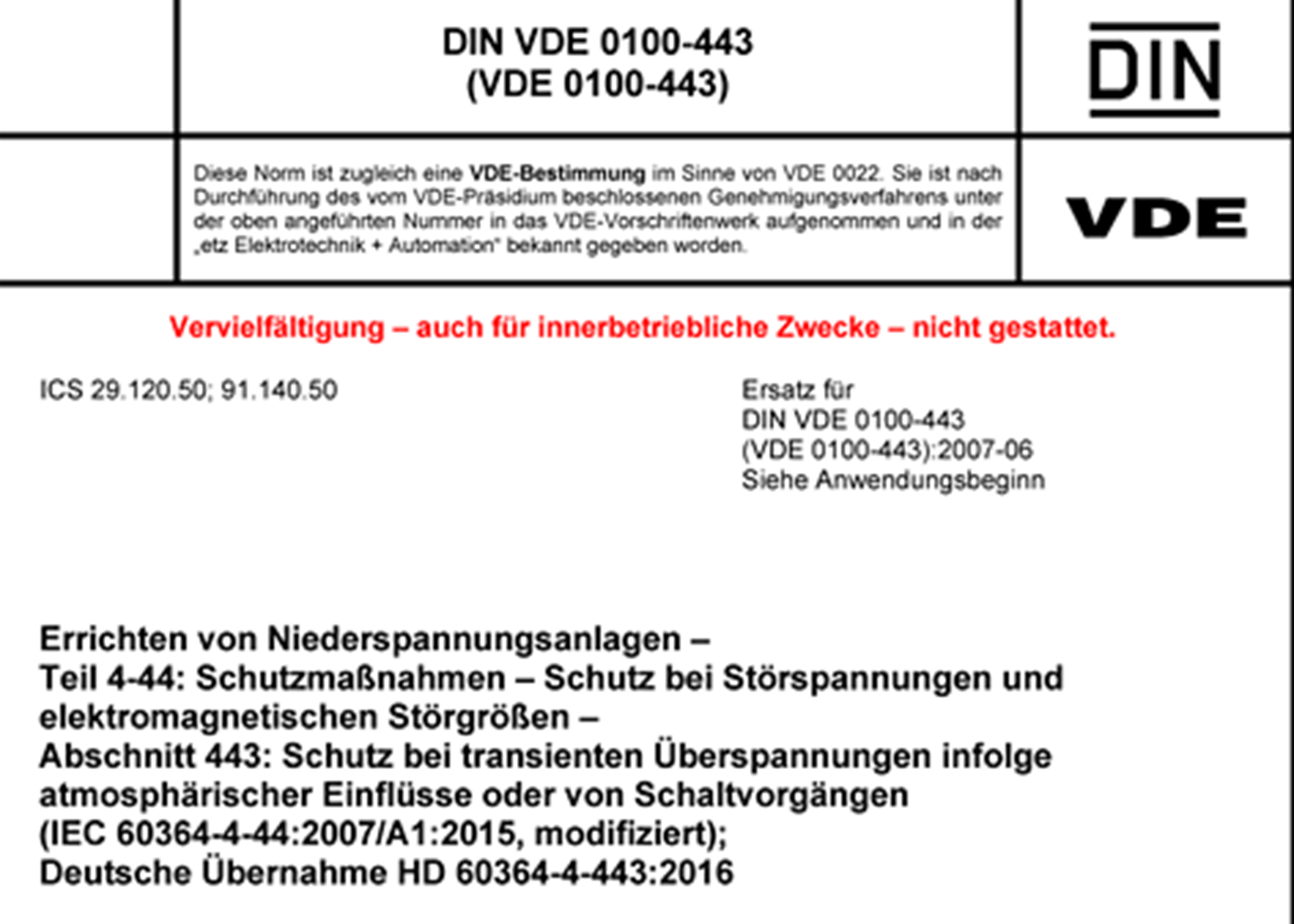 Od momentu obowiązywania normy DIN VDE 0100-443:2016 i zakończenia okresu przejściowego istnieje w Niemczech obowiązek montażu ogranicznika przepięć w instalacji zasilającej najbliżej źródła zasilania o ile w budynku znajdują się urządzenia elektryczne. W przypadku nowych instalacji najlepszym miejscem montażu SPD jest skrzynka licznikowa. W przypadku braku zewnętrznej instalacji elektrycznej na budynku, zgodnie z wymogami wystarczy montaż ogranicznika przepięć typu T2.
