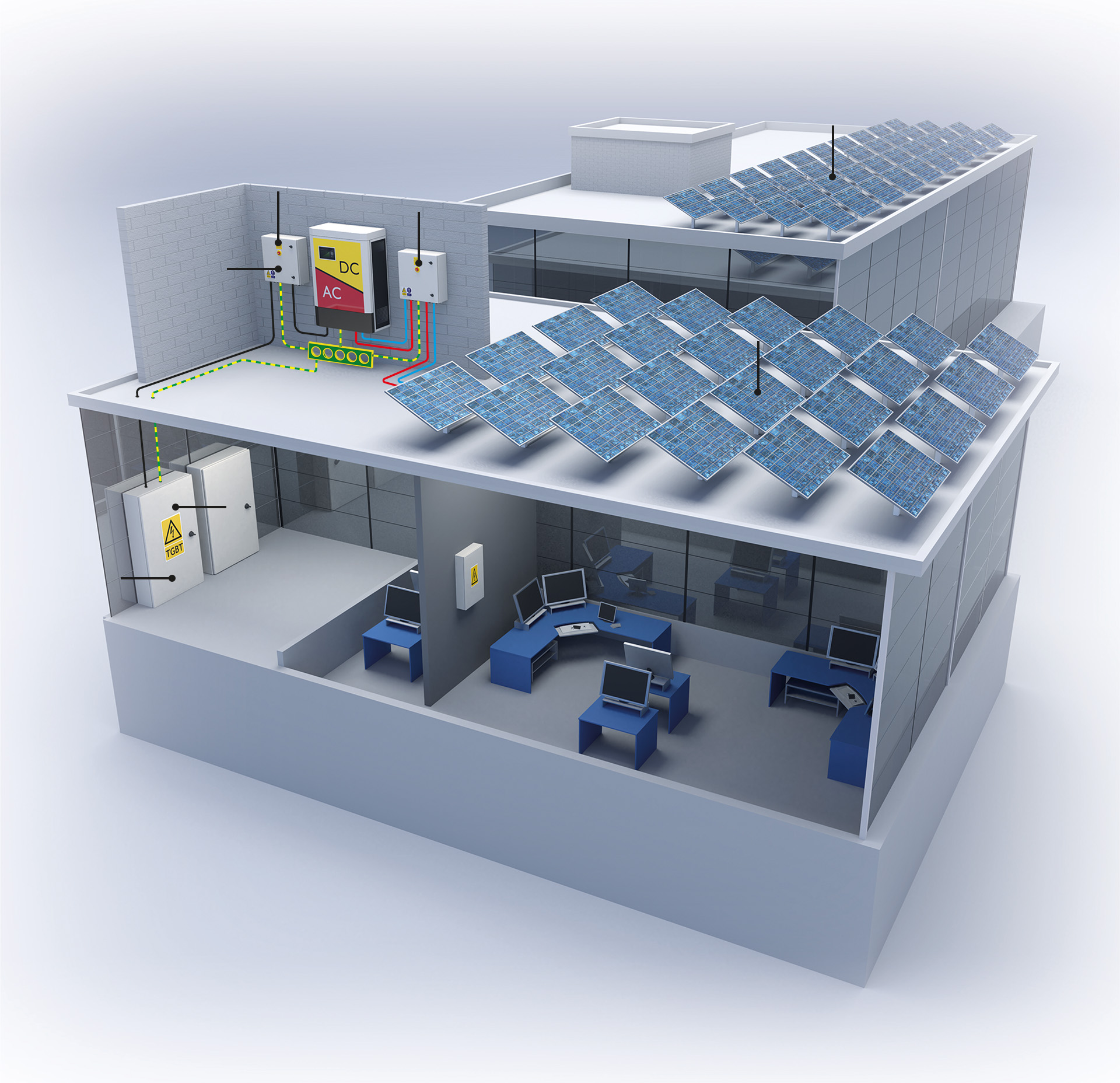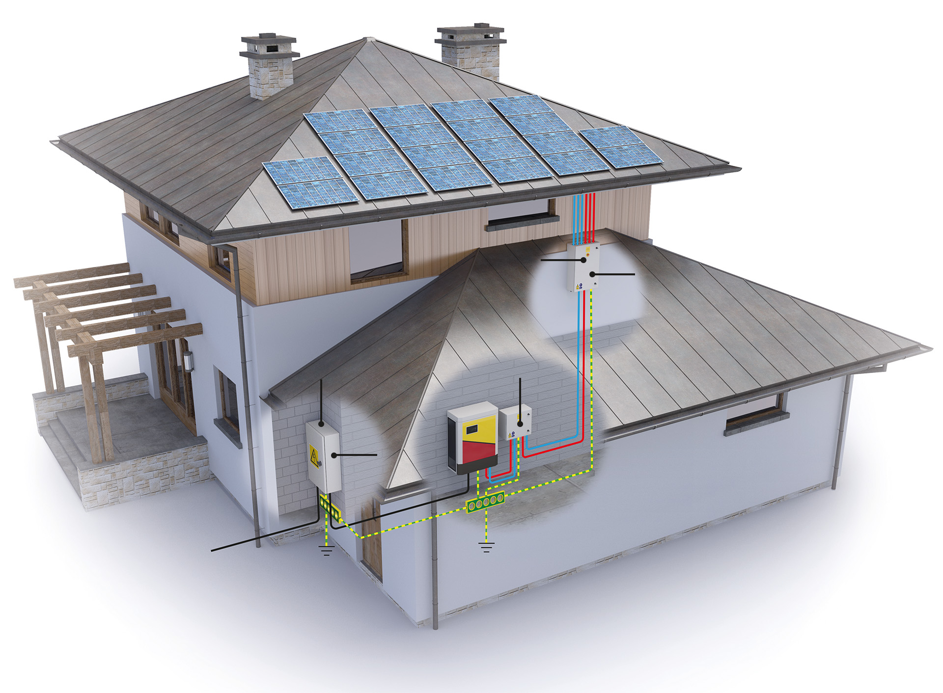 Przewody połączeniowe generatora PV, jeśli zostały niewłaściwie ułożone, tworzą duże pętle indukcyjne w przypadku sprzężeń wywołanych pobliskimi wyładowaniami atmosferycznymi, nawet w promieniu do 2km na otwartym terenie. By zapewnić bezpieczeństwo takich instalacji zaleca się (mimo zapisów w normie) w budynkach bez zewnętrznej ochrony odgromowej zastosowanie ogranicznika przepięć kombinowanego DC typu 1+2 (DS50VGPVS/12KT1). Po stronie AC instalacji w obszarze licznika energii ogranicznik kombinowany typu 1+2+3 (DS250VG-300) zapewni optymalną ochronę. Chroni on w równym stopniu inwerter od strony AC jak również wszystkie inne instalacje w danym budynku. Dla budynków wyposażonych w system ochrony odgromowej zalecamy szereg innych rozwiązań, którymi w razie pytań chętnie się podzielimy.