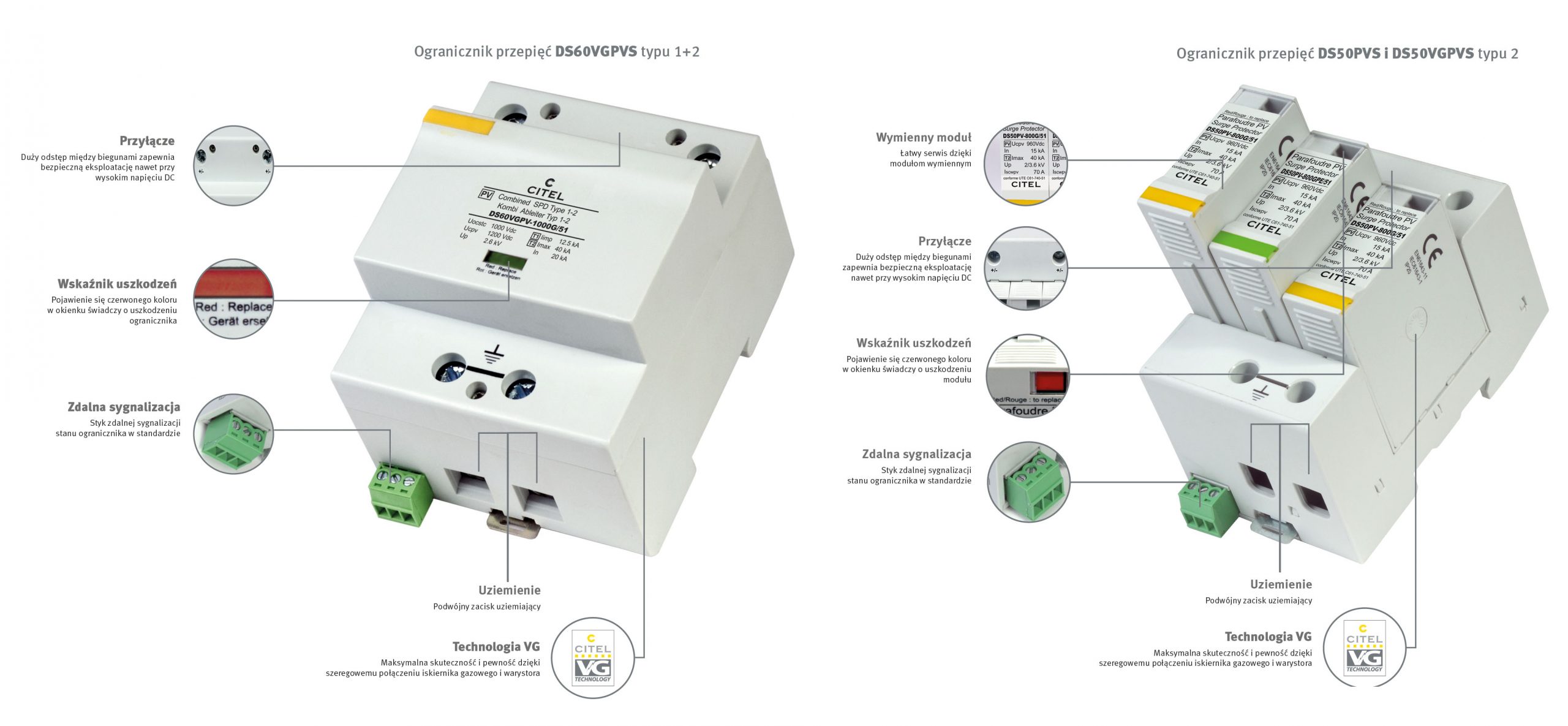 TECHNOLOGIA VGOpatentowana w roku 1998 przez firmę CITEL technologia VG pozwoliła stworzyć serię niezawodnych ograniczników kombinowanych o parametrach, których próżno szukać u innych producentów. Szeregowe połączenie warystora (MOV) z iskiernikiem (GSG) wypełnionym mieszanką gazów szlachetnych zapewnia maksymalną ochronę dla urządzeń i niezawodność działania zarówno przy odprowadzaniu prądów indukowanych jak i tych powstałych w wyniku wyładowania atmosferycznego. Technologia VG to optymalne rozwiązanie dla każdego rodzaju sieci i najwyższy możliwy poziom ochrony.