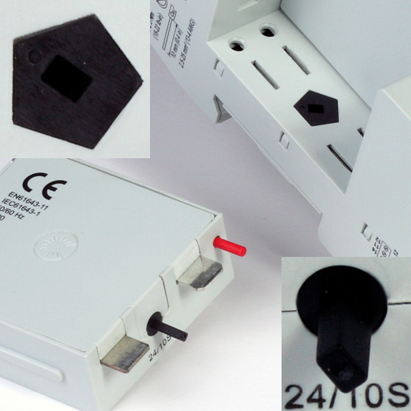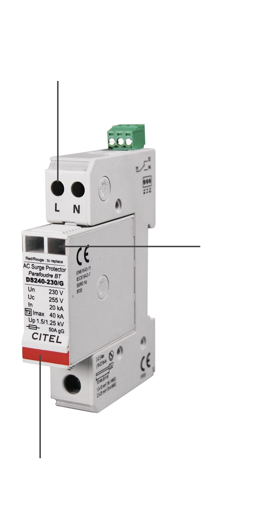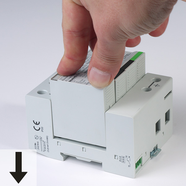 Pojedyncze moduły wtykowe oznacza się odpowiednimi kolorami (czarny – typ 1, czerwony – typ 2, niebieski – typ 2 o słabych parametrach i typ 3) oraz podaje się napięcie trwałej pracy Uc, aby uniknąć pomyłek montażowych.
