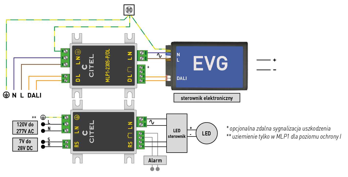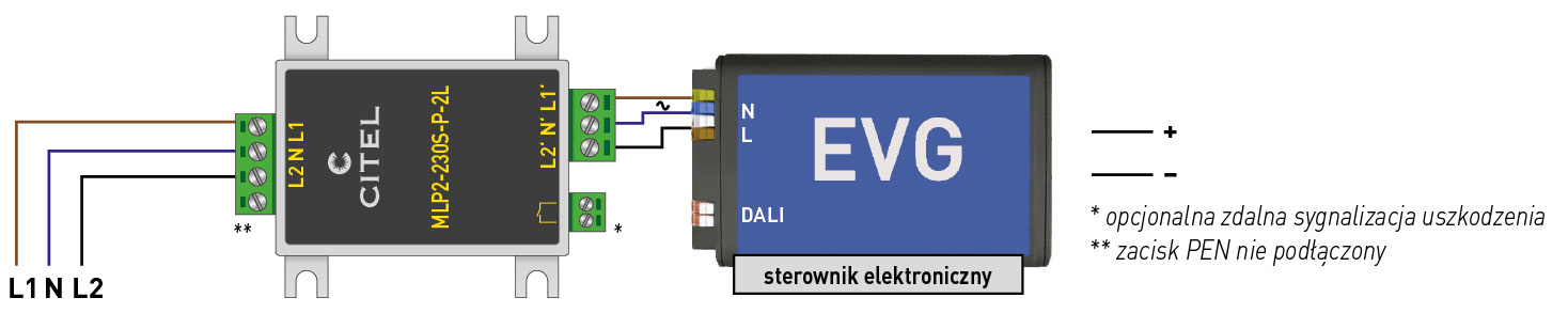 Instalacja MLP1 z DALI dla poziomu ochrony I