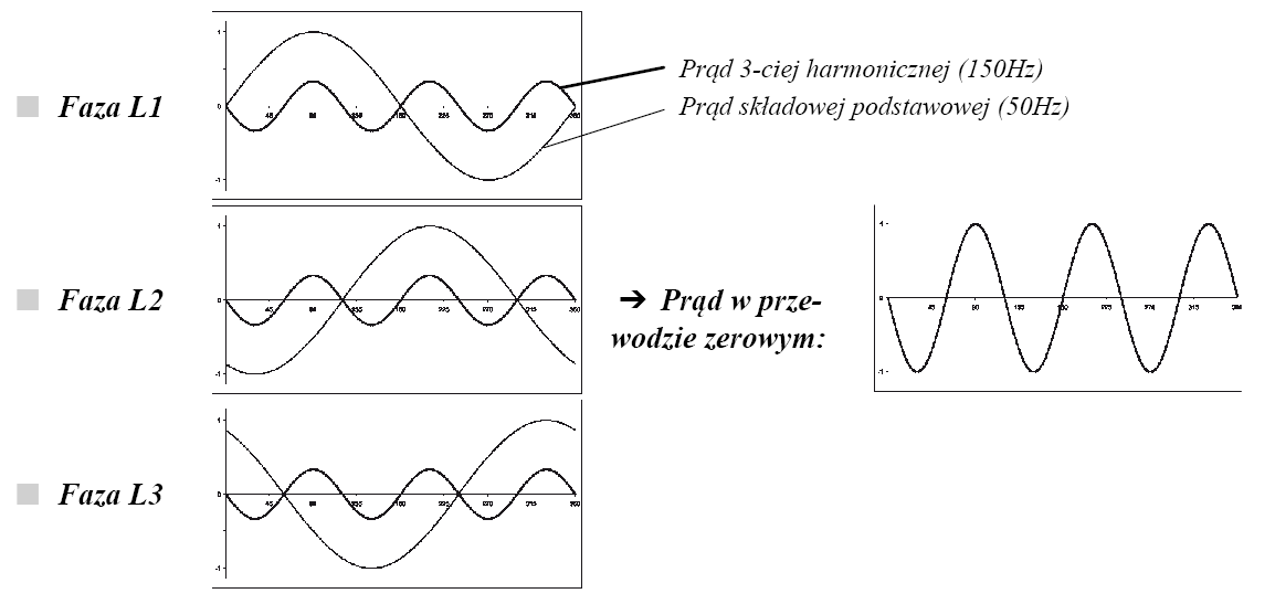 Rys. 30b: Dodanie 3-ciej harmonicznej w przewodzie zerowym