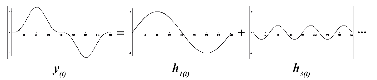 • składowych sinusoidalnych liczb całkowitych, wielokrotności częstotliwości „f“, zwanych „harmonicznymi” „hn